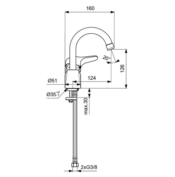 NEXT Смеситель для умывальника с высоким изливом и рукояткой сбоку.Смеситель однорычажный