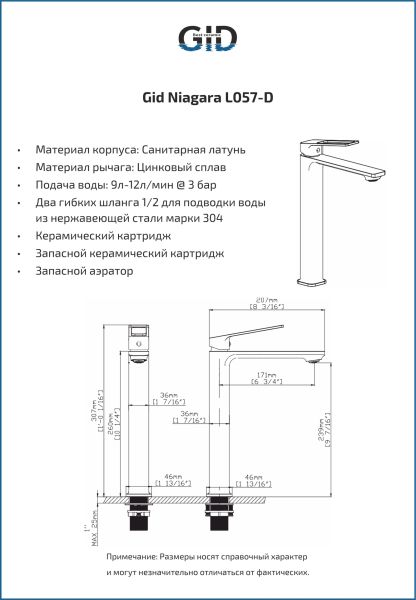 Cascada – Смелый дизайн и нестандартные формы сочетаются с испанским качеством и европейскими стандартами. Эти смесители превращают каждый поток воды в динамичное произведение искусства. GID Niagara L057-CH-D— удлиненная модель хромированного цвета из высококачественной латуни с высоким содержанием меди – 70%, вдохновленная водопадом Ниагара, который считается одним из самых мощных и впечатляющих водопадов в мире. Его уникальная особенность — это огромный поток воды, что делает его символом мощи природы. Этот смеситель олицетворяет не только силу, но и красоту, что позволяет ему стать эффектным элементом вашего интерьера, сочетая в себе долговечность и элегантный дизайн, подходящий для современного стиля ванной комнаты. Комплект: смеситель Niagara L057-CH-D; 2 шланга подачи воды, дополнительные аэратор и керамический картридж; шестигранный ключ.