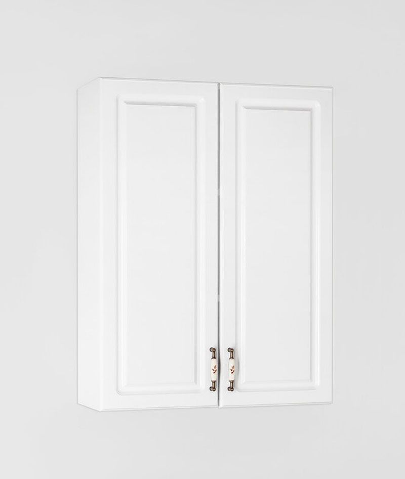 Подвесной шкаф бренда "Style Line" коллекции "Олеандр-2" классического дизайна, декорированный ручками с керамическими вставками "под бронзу" с изящным рисунком; все материалы полностью влагостойкие