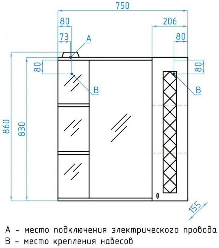 - Тип:зеркало-шкаф с подсветкой