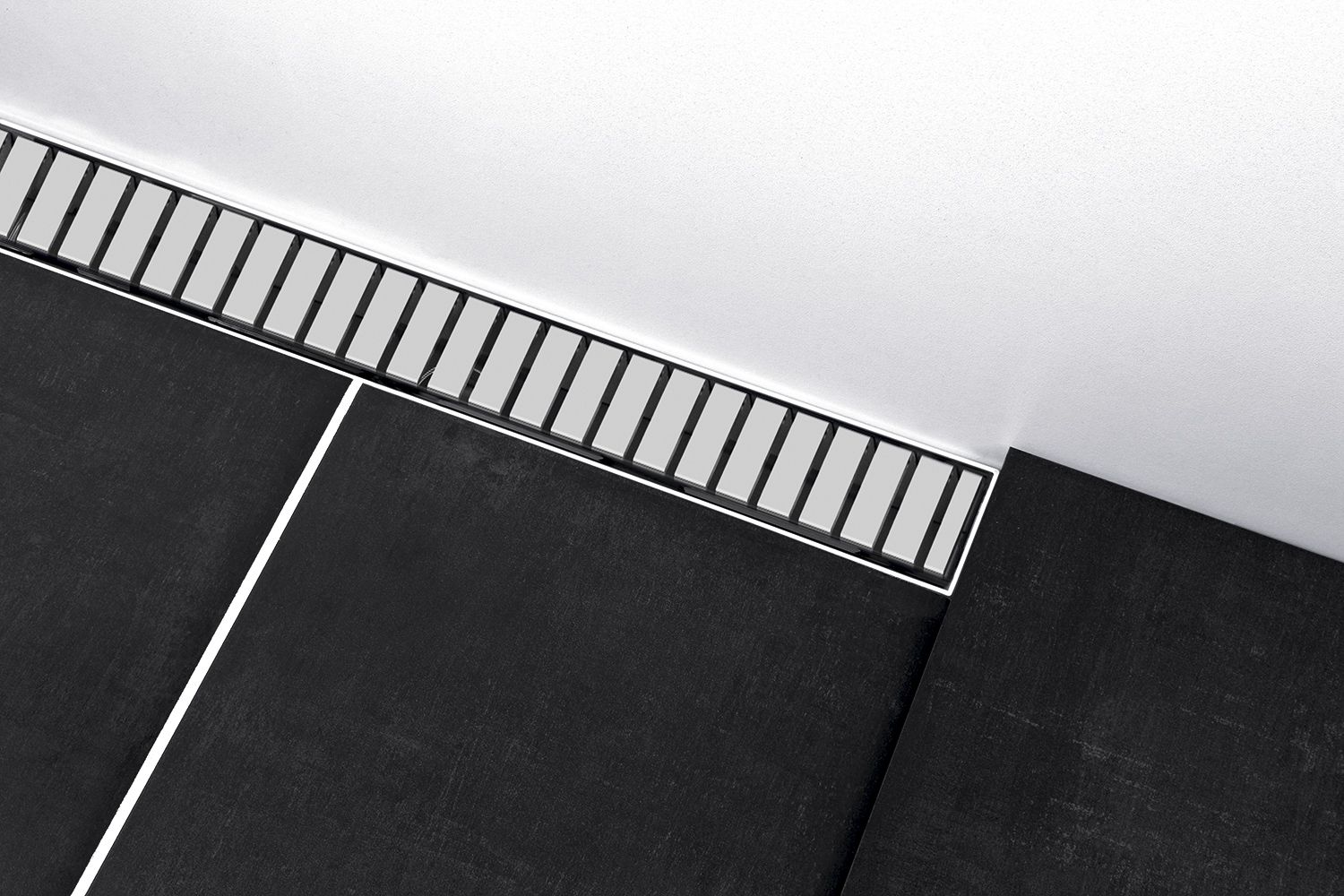 Комплект поставки: • дренажный канал из нержавеющей стали; • cифон DN 50, выход вбок, производительность (согласно DIN EN 1253) при уровне воды 10/20 мм над решеткой: 0,7/0,8 л/с; уровень гидрозатвора = 25 мм согласно DIN EN 1253; • гидроизоляционная манжета; • погружной стакан с мембраной; • 4 опоры, высота до 125 мм (до уровня чистового пола); • декоративная решетка “straight” Внимание! Минимальная высота монтажа 95 мм (от чернового пола до уровня чистового покрытия)