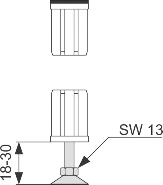 Ножка с торцевым элементом для вставки в профили TECEprofil.Ножка способна нести нагрузку, например, выдерживать вес стальныхванн. Дополнительные ножки для стальной ванны не требуются.Комплектация:• Регулируемая по высоте ножка для профилей TECEprofil• Торцевой элемент обрезиненный
