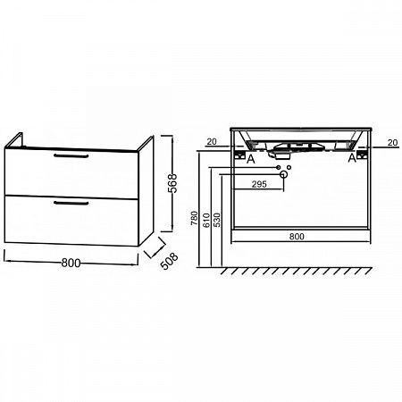 Тумба под раковину Jacob Delafon ODEON RIVE GAUCHE EB2522-R5-NR4 ручки хром купить