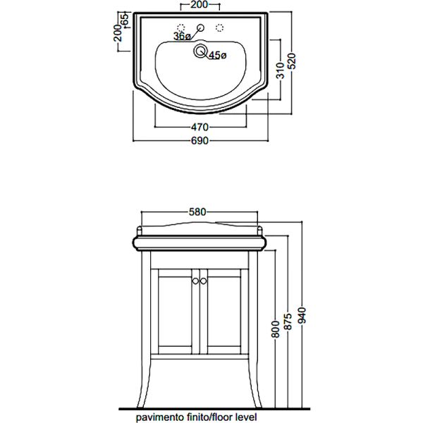 Тумба под раковину Kerasan Retro 735140 напольная орех