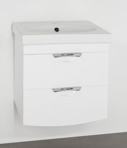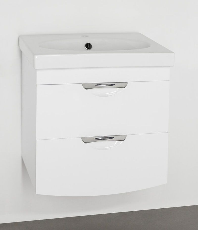 Тумба подвесная бренда "Style Line" коллекции "Жасмин 2" с двумя ящиками и стильными врезными ручками. Фурнитура - хром. Доводчики "Hettich" обеспечивают плавность и бесшумность хода, высокую надежность и прочность. Боковины изделий в пленке в цвет фасадов. Данная тумба предусматривает открытую подводку воды