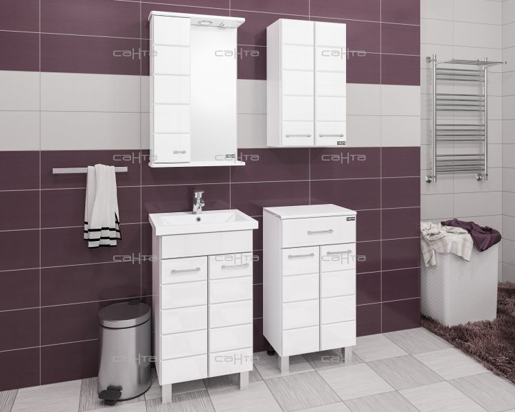 Тумба СанТа отлично подойдет как для просторной ванной комнаты, так и для небольшого помещения. Напольный способ установки производится непосредственно на пол, при этом конструкция максимально устойчива при серьезных физических нагрузках.В производстве используют только качественные влагостойкие материалы (ВЛДСП), в составе которых полностью отсутствуют опасные вещества. Серия отличается превосходным дизайном с соблюдением всех ключевых элементов современного стиля. Основным цветом, в котором выполнена тумба СанТа является белый, гармонирующий с большинством интерьерных решений. Тумба предусматривает удобную и вместительную систему хранения, состоящую из дверей, ящиков. Качественные доводчики позволяют обеспечить мягкое и тихое закрывание.Страной бренда СанТа является Россия, все товары производятся с выполнением соответствующих стандартов качества, что позволяет быть полностью уверенными в долговечности и надежности. Тумба СанТа правильный выбор в современном дизайне ванной, придающий уникальность всему помещению, при этом сохраняя функциональность.