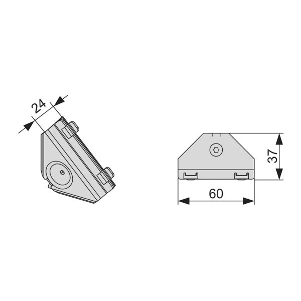 Угловое соединение для жесткого прямоугольного соединения сегментов профиля TECEspring; блок в сборе из оцинкованнои стали. Винт под торцевои ключ Torx 25 и нажимная пружина.