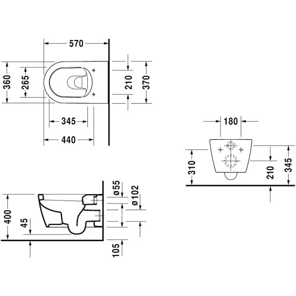 Унитаз Duravit ME by Starck 25280900001 подвесной белыйDURAVIT ME by Starck 25280900001 Подвесной унитаз покрытие WonderGliss (белый). Тип покрытия WonderGliss, для системы инсталляции, ширина - 370 мм, глубина - 570 мм, высота - 355 мм, диаметр сливного отверстия - 102 мм, выпуск - горизонтальный, материал - армированный санфаянс класса C1, вес - 26 кг, цвет - белый, гарантия - 5 лет, производство - Германия, рекомендуемая высота установки от чистового пола - 400 мм, в комплект поставки не входят и докупаются отдельно (рекомендуются): DURAVIT, артикул 0065000000, крепеж для унитазов и биде, диаметр Ø 12 x 180 мм, DURAVIT ME by Starck, арт. 002009 00 00 - Сиденье с крышкой, с микролифтом "SoftClose" (съемный вариант), DURAVIT, арт. 005064 - звукоизоляция для подвесного унитаза, DURAVIT, арт. 002001 - сиденье для унитаза.