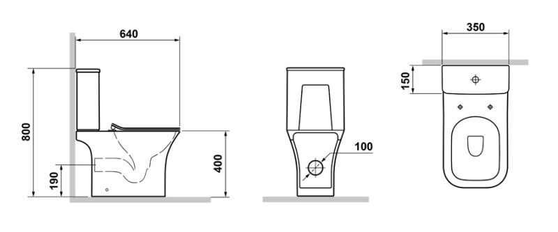• Прилегание унитаза к стене: