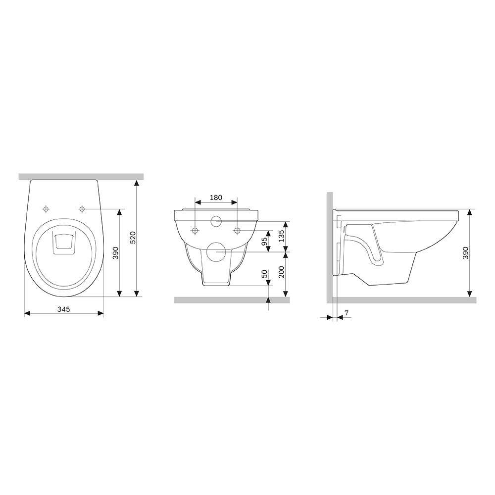 • Прилегание унитаза к стене: