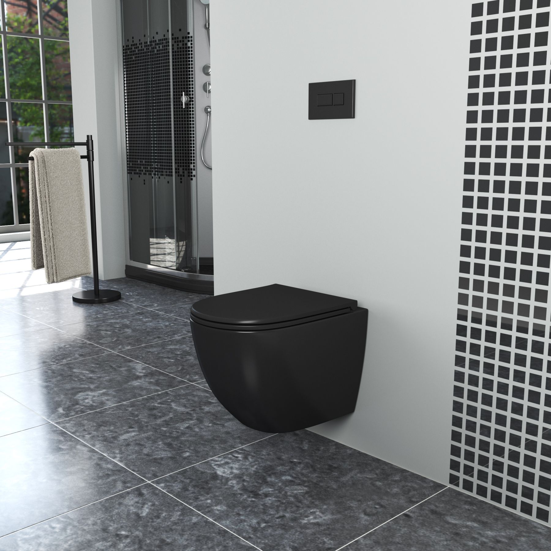 Коллекция подвесных унитазов Matrix - актуальный дизайн и изящные формы украсят любой санузел. Лофтовый черный цвет придаст шарма интерьеру.