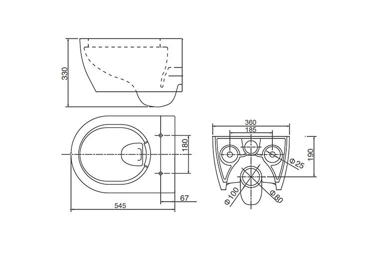 • Прилегание унитаза к стене: