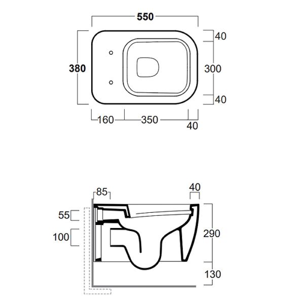 • Прилегание унитаза к стене: