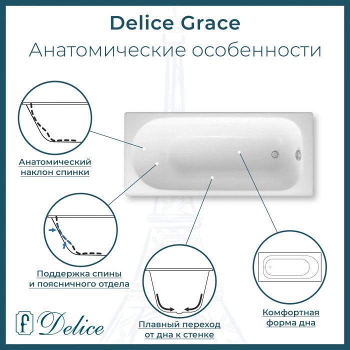 Ванна чугунная Delice Grace DLR230643 170х70 купить
