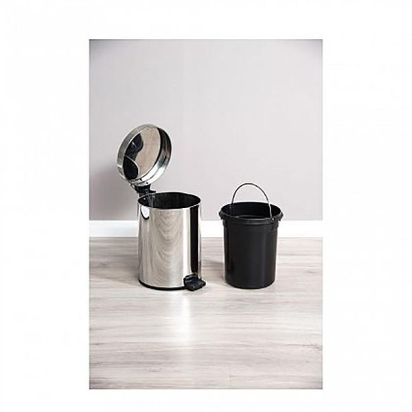Ведро для мусора Aquanet 8074 (12 литров) имеет удобную педальную систему открывания крышки. Благодаря ей, мусор можно выбрасывать, не притрагиваясь к крышке руками. Это особенно удобно, когда руки испачкались в процессе приготовления пищи. Ведро имеет удобную крышку, которая надежно блокирует все запахи, поэтому мусор не обязательно выбрасывать сразу, если, допустим, почистили рыбу - неприятный запах не будет портить жизнь. Крышка мягко открывается за счет удобного  механизма, достаточно нажать на педаль ногой. Основа, в которую устанавливается ведро, выполнена из нержавеющей стали, так что повреждения ей не страшны. К тому же, за счет веса, она довольно устойчива. Пользоваться такой урной довольно удобно, а ее цилиндрическая форма и хромированный облик вносит в интерьер некую футуристичность. Для большой семьи мусорное ведро, рассчитанное на 12 литров, вполне подойдет.