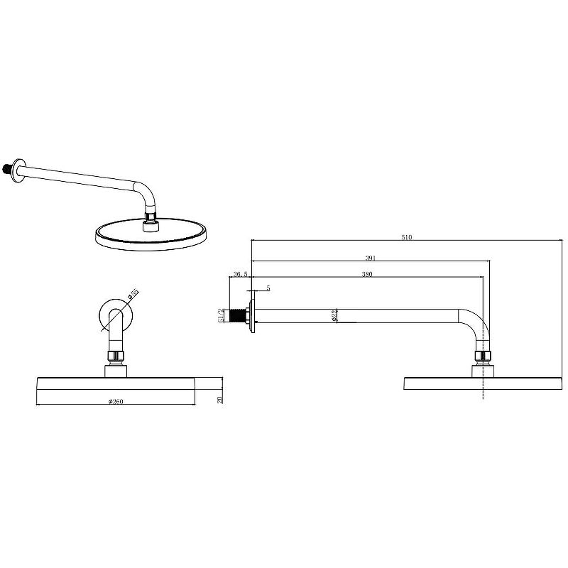 Верхний душ Aquatek AQ2080MB Черный матовыйХарактеристики: