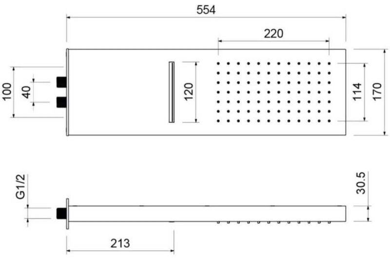 - Размер верхнего душа, см:55.4