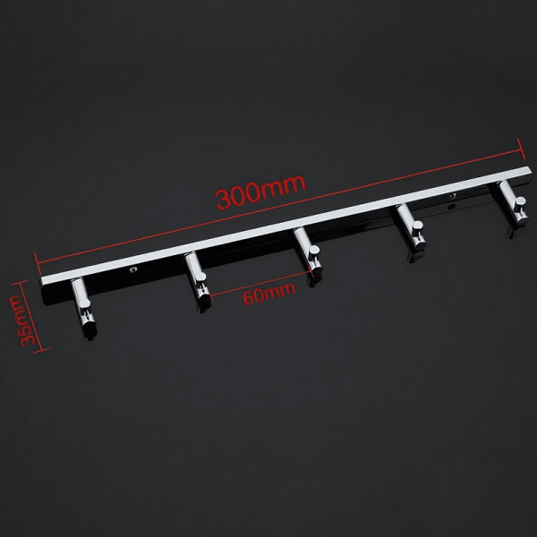 Крючки расположены на оптимальном расстоянии друг от друга для удобного использования. Устанавливается на стену посредством шурупов или саморезов. Стойкое хромированное покрытие защищает изделие от влаги и придает ему блестящий вид.