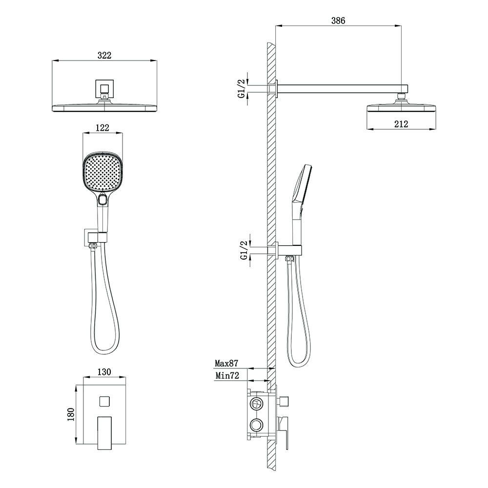 Встраиваемая душевая система AVELLA, Графит брашинг