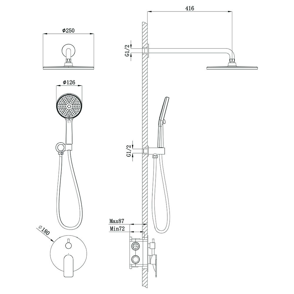 Встраиваемая душевая система LICATA, Хром глянец купить