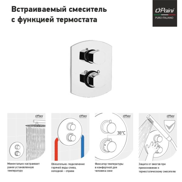 Встраиваемый смеситель для душа Paini Ovo 86CR690TH с термостатом хром