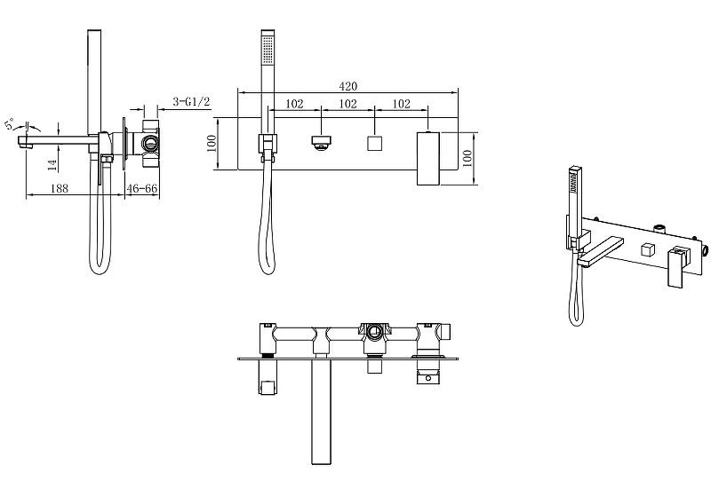 Смеситель для ванны Boheme Qubic 474-2-CR с душевым гарнитуром.Характеристики:Цвет: хром.