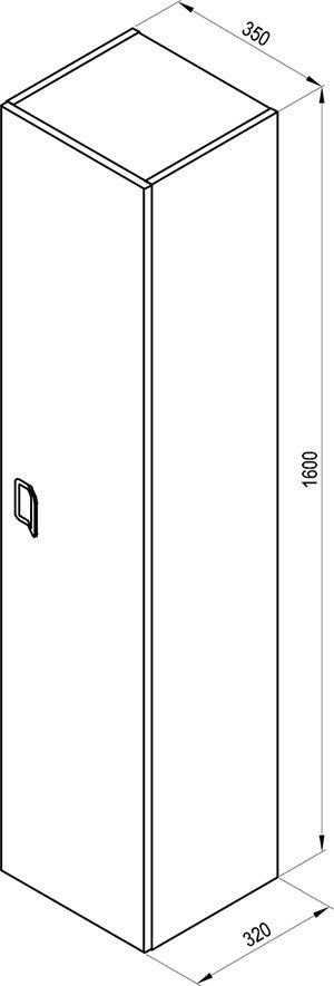 В шкафу шесть полок из дымчатого стекла. Шкаф снабжен ручкой оригинальной конструкции белого цвета, в качестве дополнительной опции можно установить ручку с хромированной отделкой.Размеры (ш х г х в): 35 x 160 x 32 см