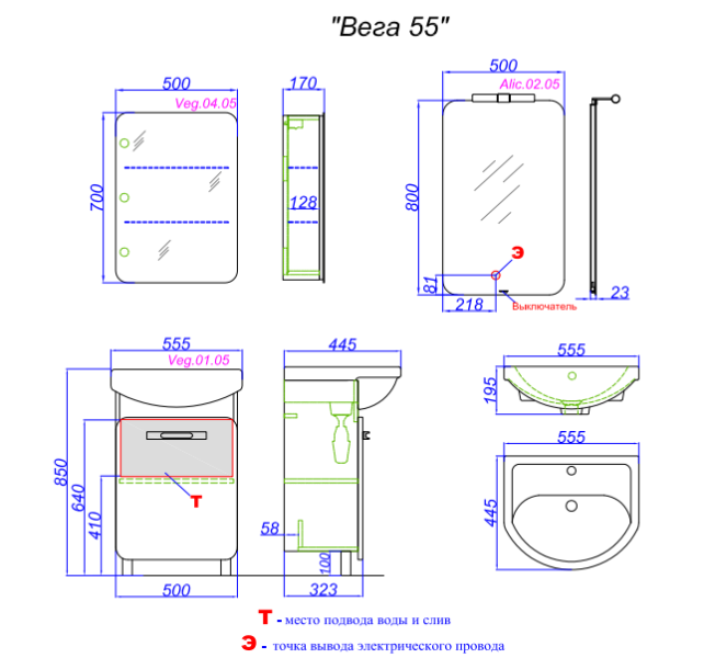 Зеркальный шкаф Aqwella Вега Veg.04.05 купить