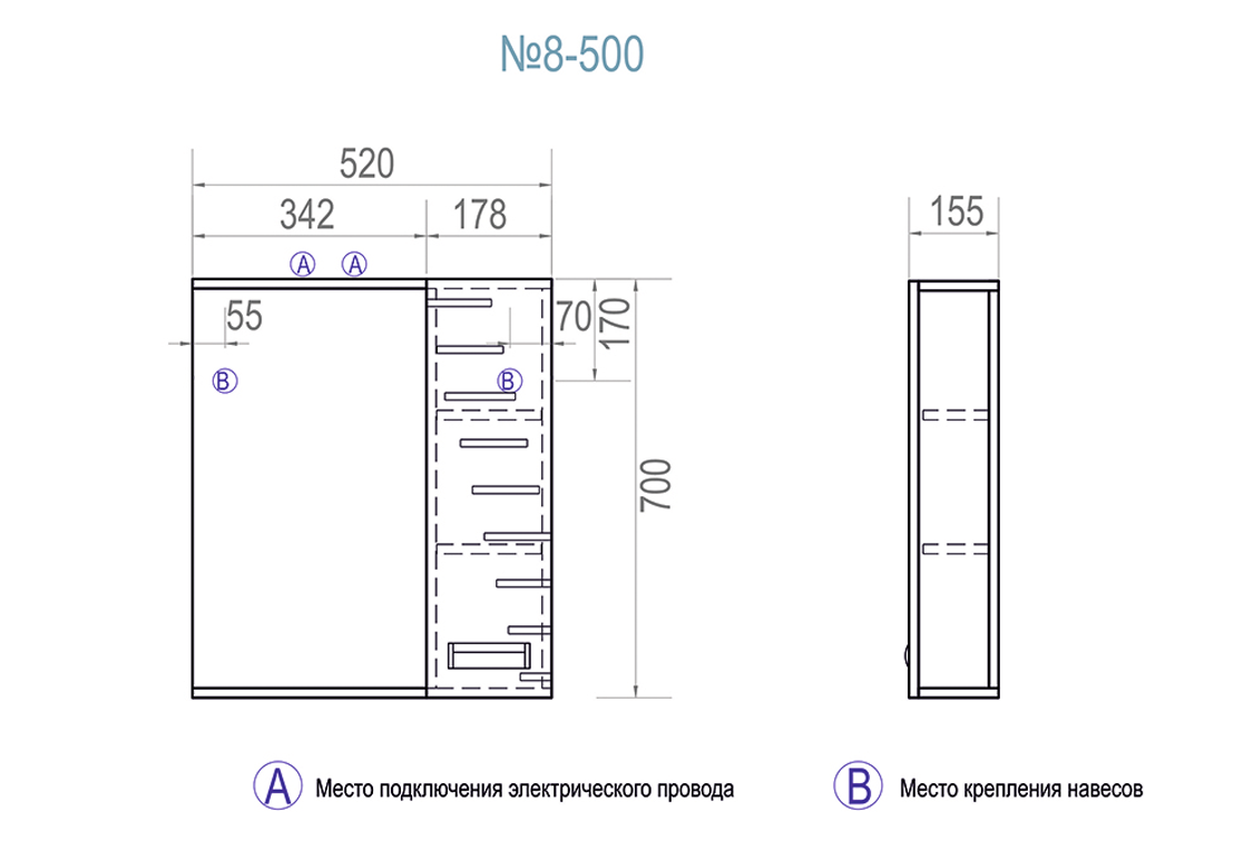 Зеркальный шкаф Vigo Diana 500 правый