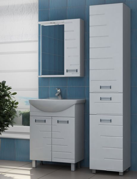 1 дверца; 2 полки ЛДСП, 1 светодиодный светильник, включатель с розеткой; ручка врезная металлическая хромированная.